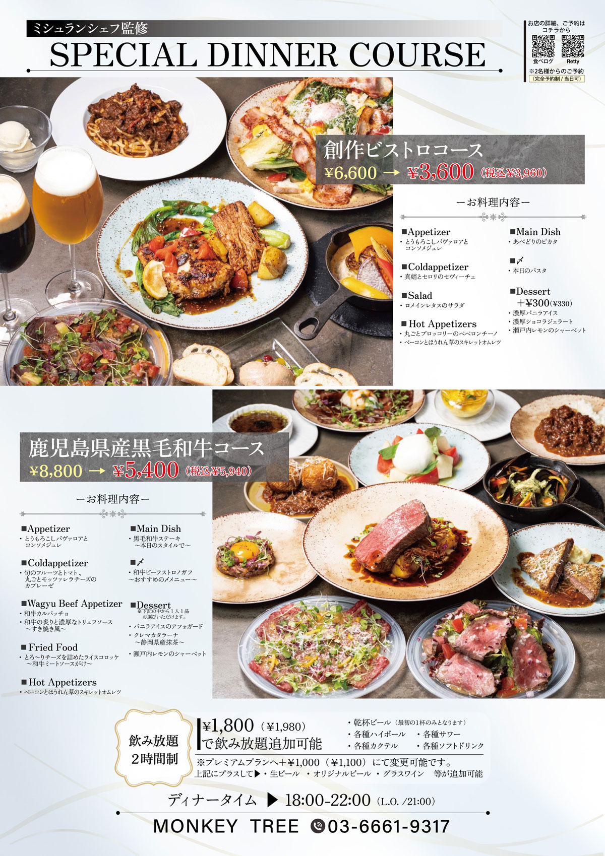 メニューの内容や、金額の変更・修正させていただきました。