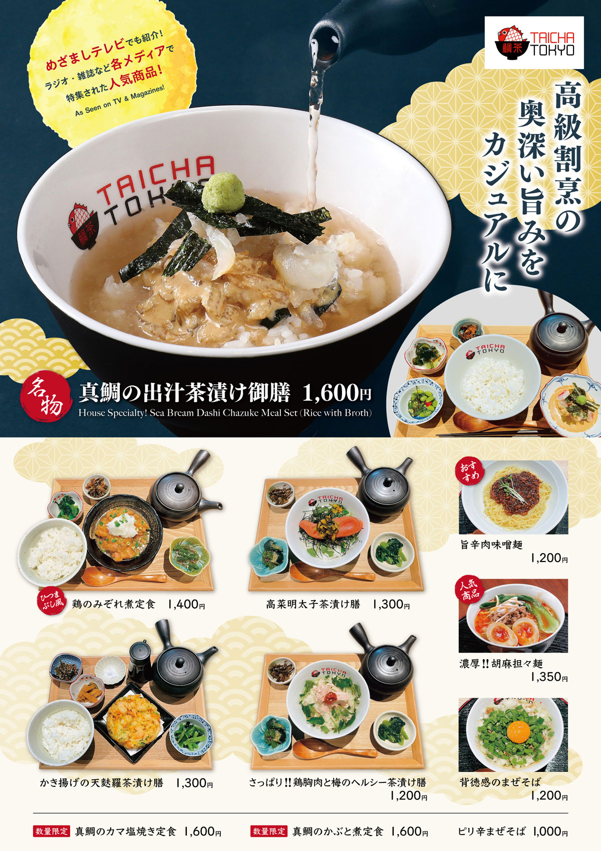 店主様からの「目立つ」というご要望をもとに、料理の美味しさを伝える事、目を惹く事を意識してデザインしました。料理も出張撮影させていただき、実際の写真を使用する事で、よりアピール力を高める事が出来たと思います。